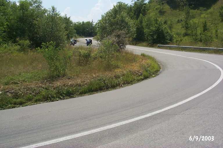 עמק בצפון איטליה - שתי אותיות אני מחליט שהיום חייבים לטעות בדרך. אחרי הנסיעה המשעממת מאתמול צריך שגם הדרך תהיה מעניינת. אחרי תידלוק ותקרית עם חמום מח איטלקי שנסוג עקב התנועה הישראלית המפורסמת של סיבוב כף היד מול הפנים שלו וצעקה איומה בעיברית "למה מה קרה?", ראה זה פלא - אני טועה בדרך. לוקח שלוש דקות למצוא איפה אני ואני מחליט במקום לחזור אחורה, "לחתוך" מערבה לעבר הדרך שאני מחפש. עוברים שדות, עיירות, גשר צר (מאוד) והדרך יפה אבל די חדגונית. לאט לאט נכנסים לאזור יותר הררי ובפניה אחת ימינה אני מחליט לרדת מהכביש ולטפס על ההר לתפוס את הנוף. קצת פיתולים ואני מוצא מקום עצירה, נח, מצלם ויורדים חזרה לכביש. בדיעבד מסתבר שהיה מיותר כי היינו בתחילת של אחת הדרכים הכי מפותלות שנהגתי בהם. עמק הפו (שמילא משבצות של שתי אותיות ברב התשבצים שאי פעם נכתבו בארץ) משתרע בין שני רכסי הרים, מצפון לדרום. אנחנו לאורך הרכס המערבי, בדרך שמטפסת בעיקולים חזקים, צפופים וצמודים מאוד לאורך 150 ק"מ. עד מהרבה הדרך מתגלה קקשה מדי להונדה גולד ווינד ובעצירות מסויימיות המהירות חייבת לרדת ל-20 קמ"ש. טוסקנה. הנופים מדהימים. אתה חייב להשאר דרוך וכל החושים מרוכזים, אלא אם כן אתה מתכוון לעבור את המרחק בשבועות במקום בשעות. מדי פעם אני מאט לחכות לשותף שלי לפשע, או סתם לנוח, ואז פתאום מופיע איזה אופנוען או קבוצה שלהם, ועוקפים אותך עד לשלב שהם מתעייפים ואתה עובר, וחוזר חלילה. אתה מאבד במהלך הדרך הזו הרבה ק"ג מהמאמץ, ואם אתה כמוני ומשפשף את ה-1.90 מ', אתה קם בבוקר אחרי עם כאבי גב. הדרך כל כך יפה שזה לא להאמין. אתה נוסע ביערות סבוכים, כמו גם בשטחים פתוחים. עיקולים אין סופיים נותנים לך זוויות ראיה מכל הכיוונים וכיוון שאני כל הזמן חושב גם על האתר, אני עוצר כשאפשר (ולרב אי אפשר) לצלם תמונות שאולי יגרו לחלק מכם את הדמיון ויגרמו לכם לעשות את אותו מסלול. המלצה - קחו הרבה מים אתכם ותדלקו לפני. שמנו את כף רגל שמאל (זאת שתעלה ותוריד הילוכים בקצב מהיר) וכפפות טובות. בשלב מסויים היה כל כך חם שהורדתי את המעיל, שמתי את ה"מזגן" (צעיף ספוג מים) והמשכתי לפרק זמן מסויים עד שהתקררתי. אני יכול לכתוב שעות על העמק והנופים אבל אז לא יהיה לי זמן לראות את פירנצה אז עד כאן בינתיים.